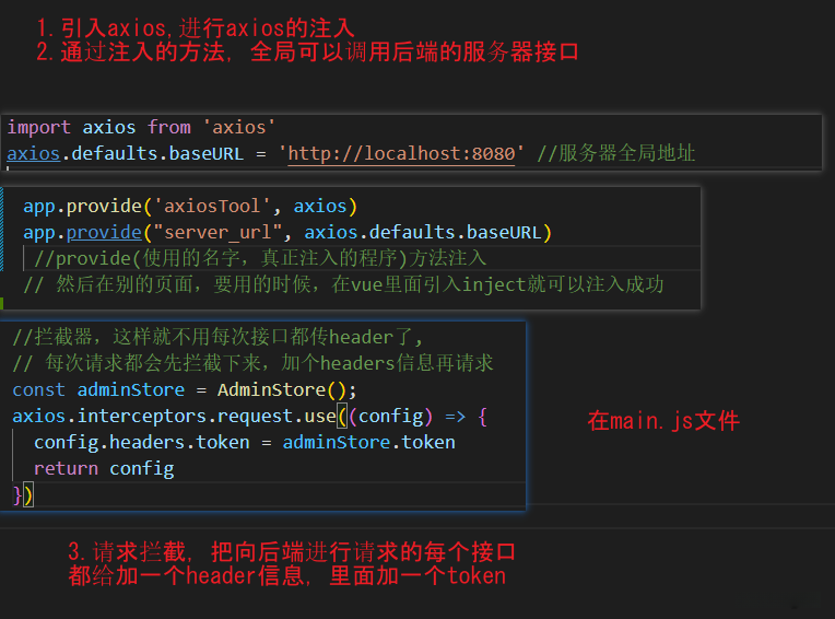 PS1: 1.注入axios,服务器地址,这样其他地方只要调用那个 注定义的名字就可以使用了。