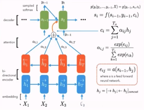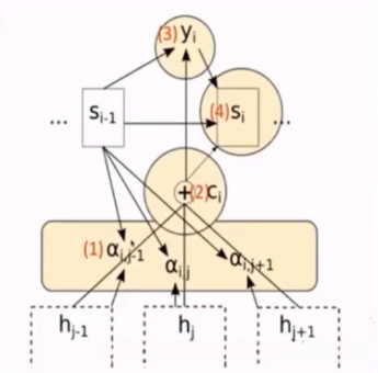 解码器:提出注意力机制,对输入的隐藏状态求权重