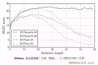 在测试集中产出与句长相关的译文时计算得到其BLEU分数的结果显示,在整个测试集上计算得到了相关数据其中包含有未知单词的句子RNNsearch模型在处理较长文本时展现出较高的性能水平