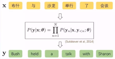 同样地, 解码器也可以认为按照顺序条件概率的方式对联合概率进行分解, 以此赋予翻译y的概率值.