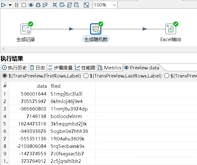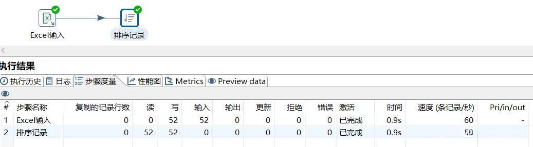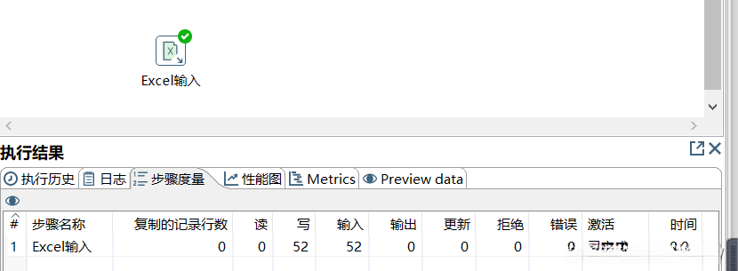 单击转换工作区顶部的 按钮,运行创建的转换,执行结果,如图23所示: