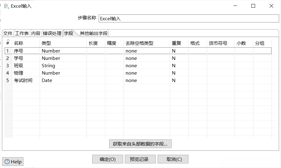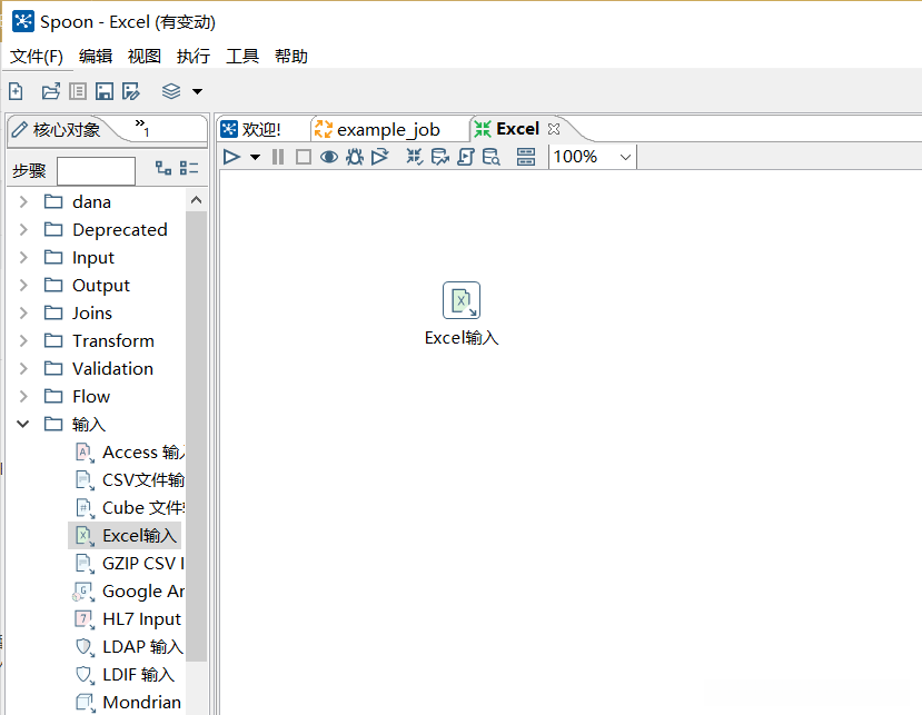 使用Kettle工具,创建一个转换,并添加Excel输入控件,具体如图1所示: