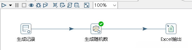 使用Kettle工具,创建一个转换,并添加“生成记录”控件、“生成随机数”控件和“Excel输出”控件,具体如图11所示:
