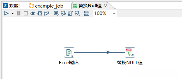 使用Kettle工具,创建一个转换,并添加“Excel输入”控件和“替换NULL值”控件,具体如图31所示: