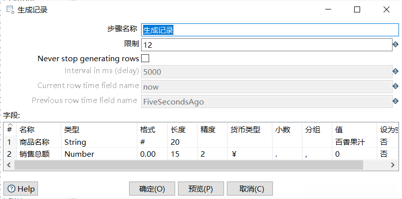 使用Kettle工具,创建一个转换,并添加“生成记录”控件,具体如图6所示: