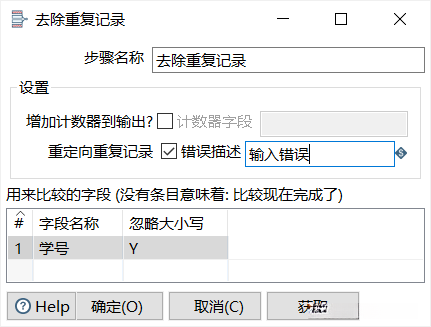 双击“去除重复记录”控件,进入“去除重复记录”控件界面,添加字段,如图29示: