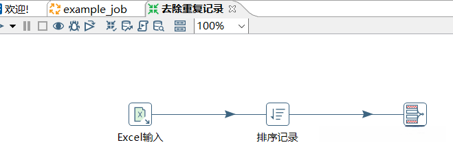 使用Kettle工具,创建一个转换,并添加“Excel输入”控件、“排序记录”控件和“去除重复记录”控件,具体如图24所示: