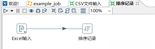 使用Kettle工具,创建一个转换,并添加“Excel输入”控件和“排序记录”控件,具体如图18所示: