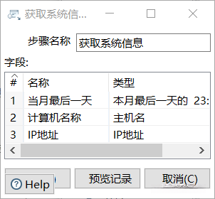 双击“获取系统信息”控件,进入“获取系统信息”控件界面,添加字段,并预览数据,如图16所示: