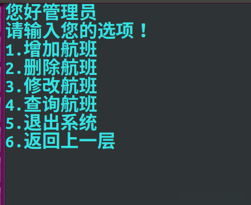 管理员是提前设置了特定的管理员账户,其中以TJC账户为例,其密码设定为123。在登录流程中,该账户无需密码验证。若需要增加验证功能,则应在登录模块中自行添加相应的判断语句。管理员登录后可执行的四个操作包括:添加航班、删除航班、修改航班以及查询航班。