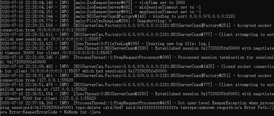- PERSISTENT,持久性ZNode 。创建后,即使客户端与服务端断开连接也不会删除,只有客户端主动删除才会消失。
