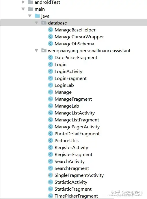 该Java文件夹中的内容主要是后端代码。其中涵盖了数据库以及Wengxiaoyang的人工智能财务助理工具。这些功能模块的具体实现如图所示: