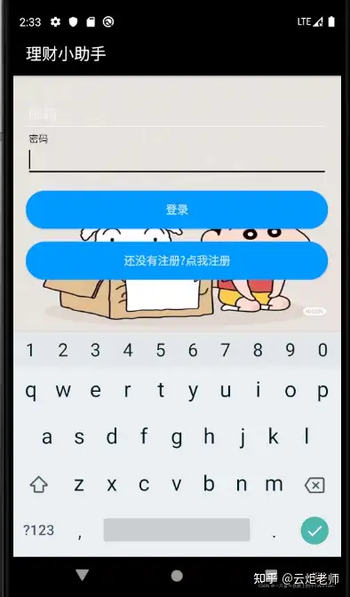 - 当用户首次打开理财小助手应用时,默认会显示一个登录界面。