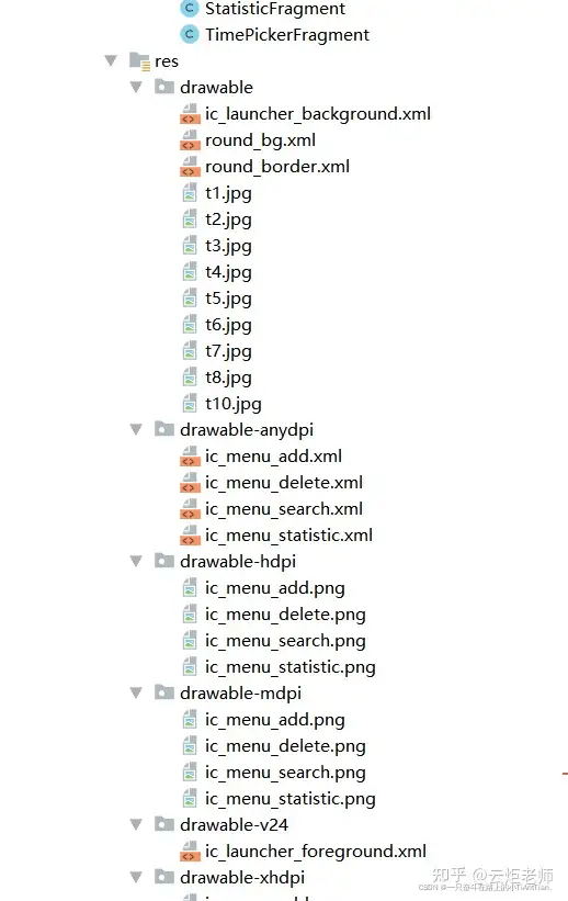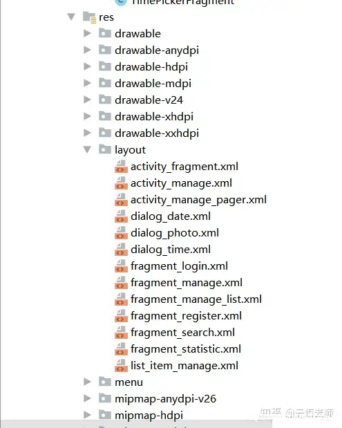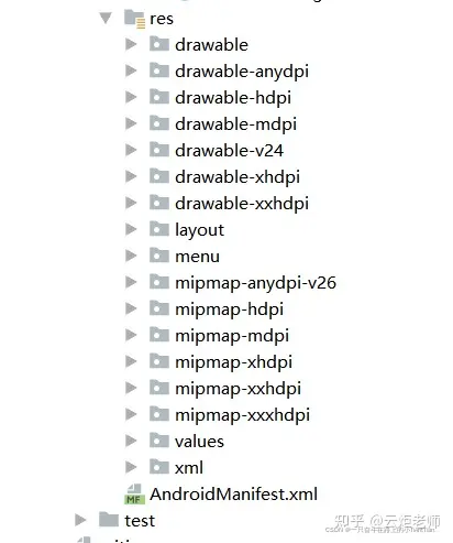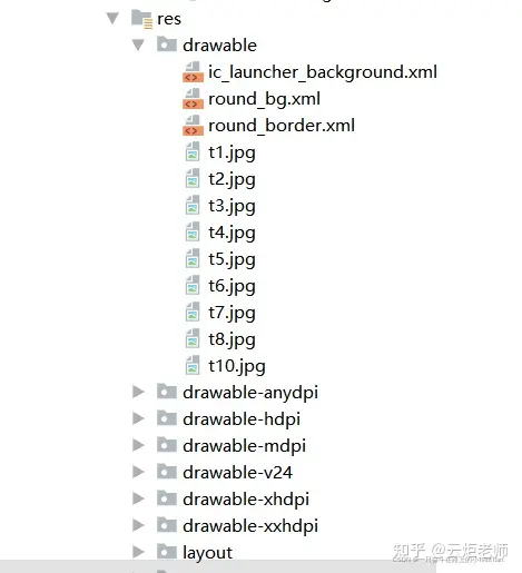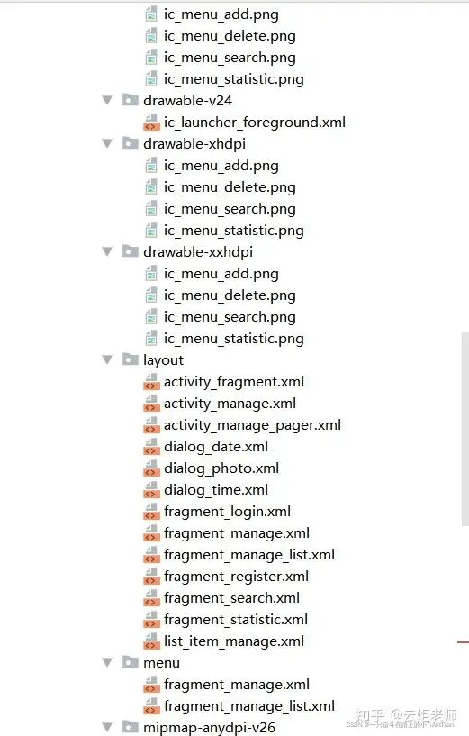 res文件夹内的内容包含了图片以及前端代码, 包括按钮元素或布局模块等, 属于安卓开发者的必修内容.