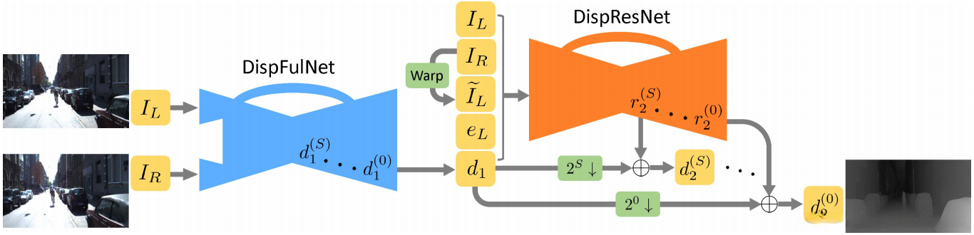 - 通过采用DispNet与up-conv技术的结合实现全分辨率输出,在此过程中使得视差图像包含更多细节。
