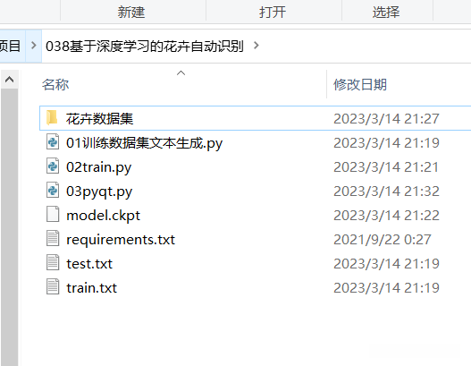 其中花卉数据集文件夹下存放的图像数据集。