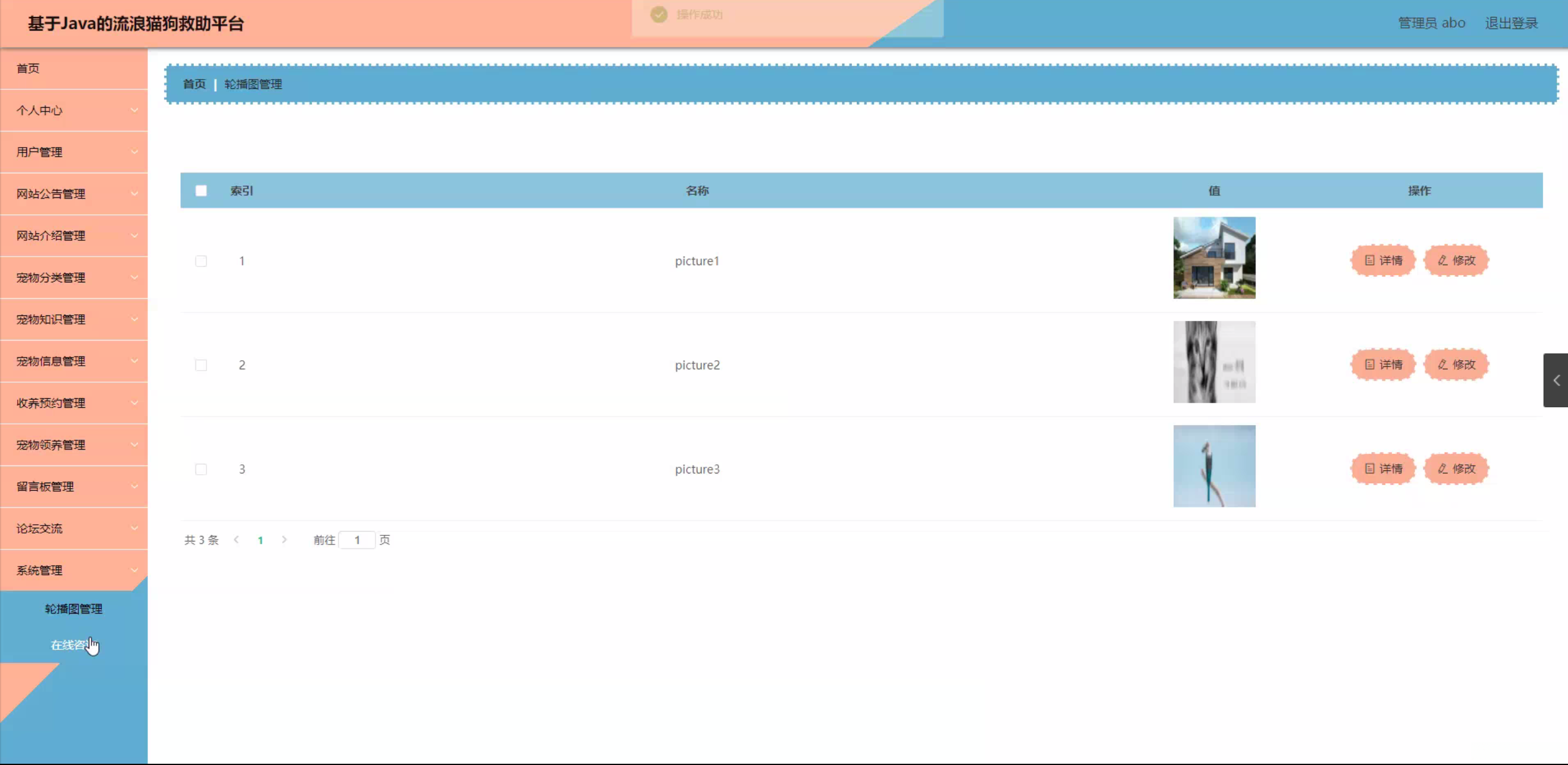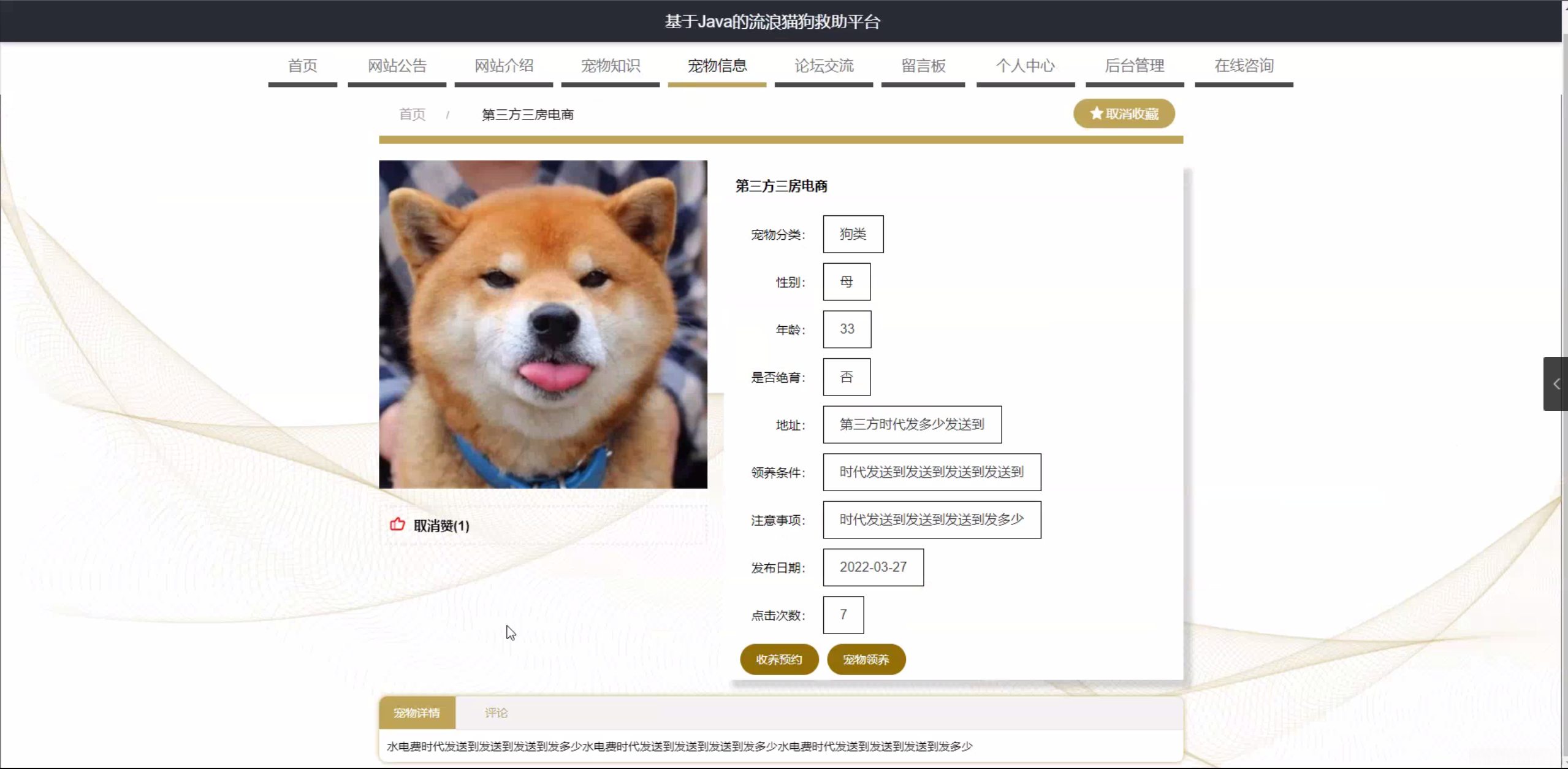 意义: 首先,基于Java的流浪猫狗救助平台可以为流浪猫狗提供一个集中的信息管理和救助服务。通过该平台,志愿者和救助组织可以方便地发布流浪猫狗的信息,包括照片、位置、健康状况等,以便更多的人能够参与到救助工作中来。同时,该平台还可以提供在线预约领养的功能,让有意愿领养的人能够更方便地找到合适的宠物。