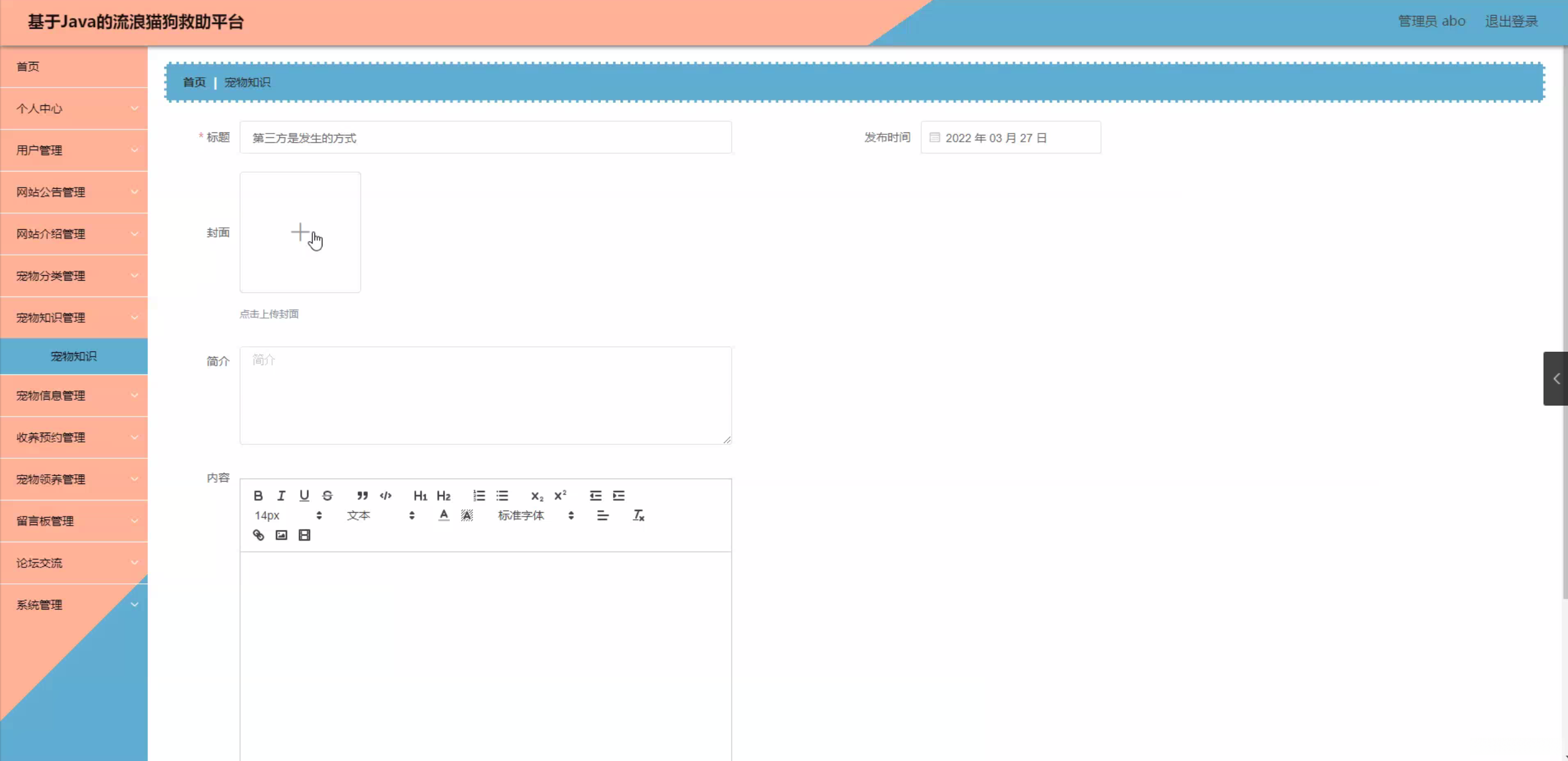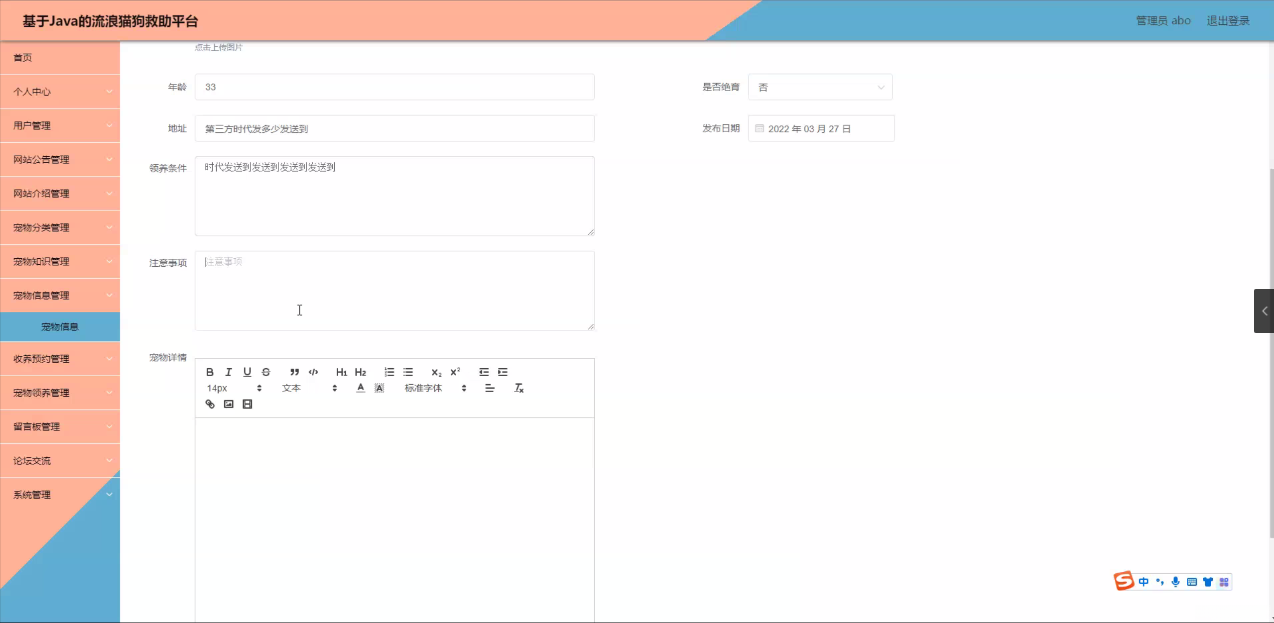 Java基于Java的流浪猫狗救助平台(源码+mysql+文档)