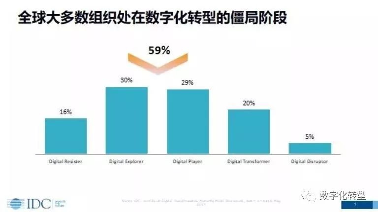 如果将数字化转型分成五个阶段,全球大多数组织正处在第二和第三的僵局阶段,而处于第四和第五阶段的组织,全球不超过25%。总体而言,未来数字化转型将面临五大挑战,一是陈旧的考核体系,数字企业需要新的度量标准(KPIs)来了解进度和引导投资。如果考核体系不变,企业很难实现数字化转型。二是孤立的组织架构,缺乏跨业务部门的协调能力,公司的潜能不能最大化,变革的速度也受限。三是短视的战术规划,公司缺乏明确的战略转型和投资路线图。四是有限的经验技能,数字化决定了企业难以培养的一套新的能力。五是不足的创新协作,有太多的举措并涉及太多的技术提供商,组织必须关注数字平台,以优化资源和更快地进行创新。