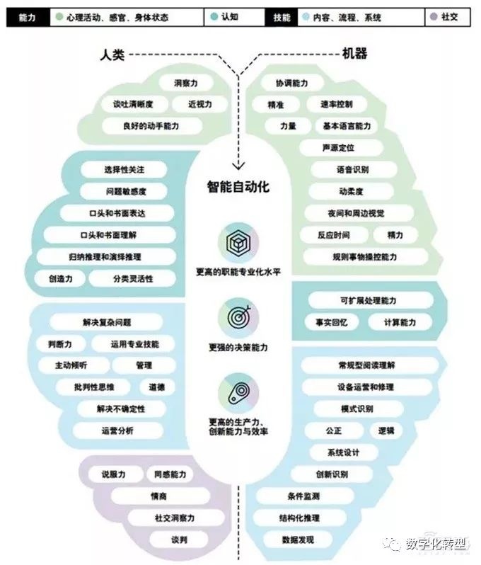 第三个是数字人才与技能。 企业首先必须帮助其领导层进入数字时代;企业必须知道如何通过公司文化和激励措施来吸引、留住和开发与数字时代相关的人才与技能;企业必须采用不同的组织架构、工作策略和方法,使机器人与On-Demand 的工人有效地合作和整合在业务流程之中。