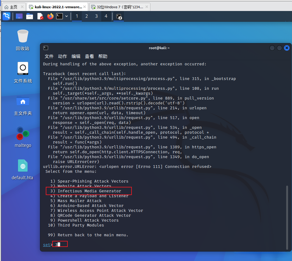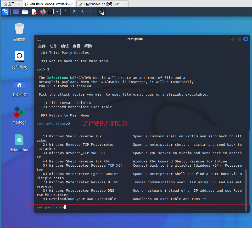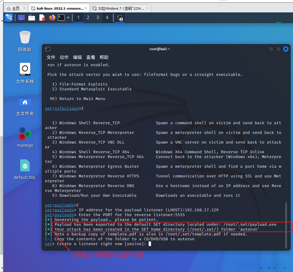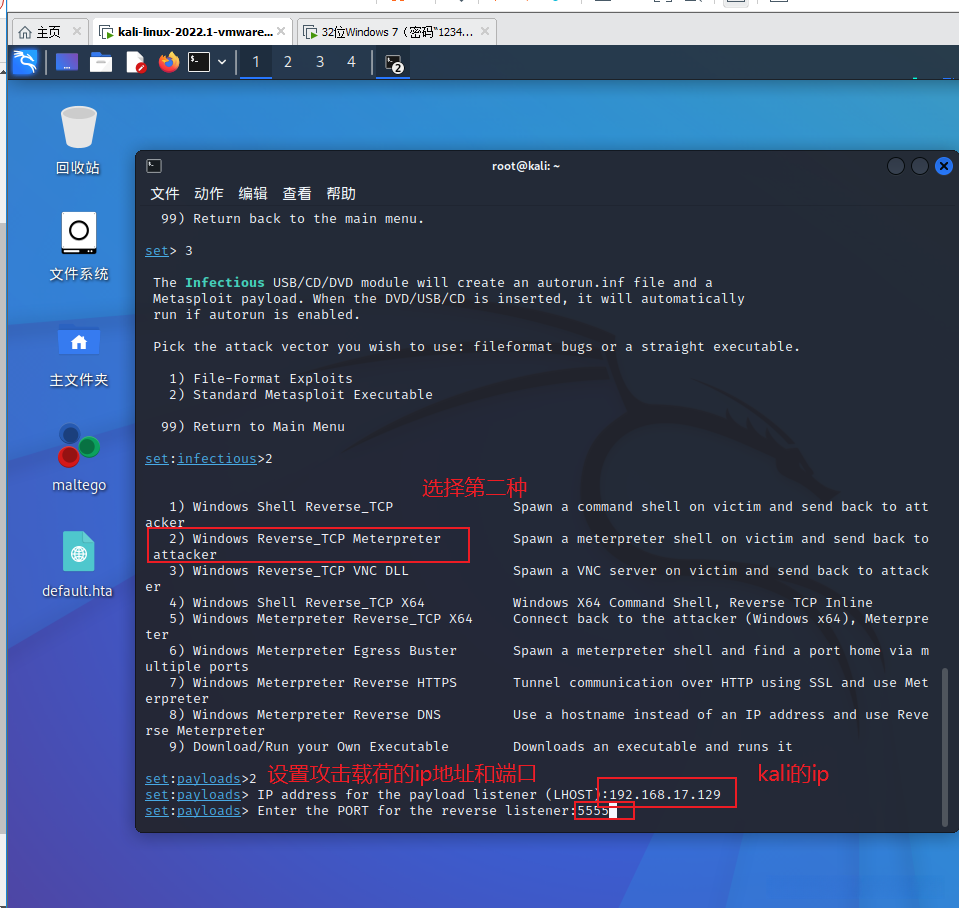 菜单: Social-Engineering Attacks / Infectious Media Generator