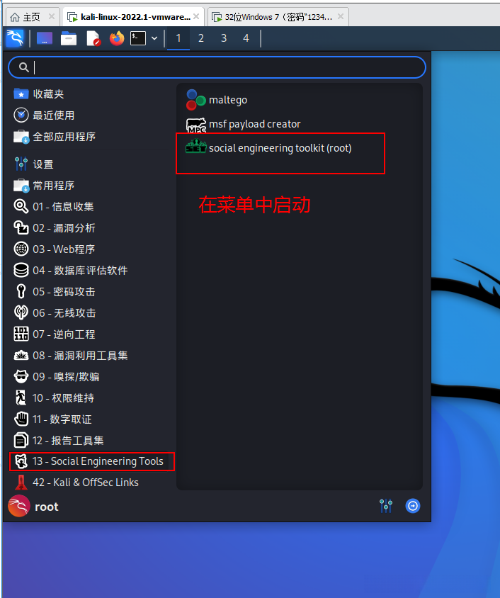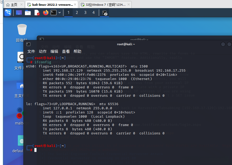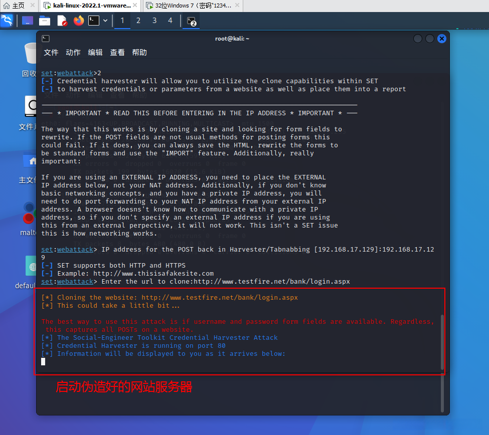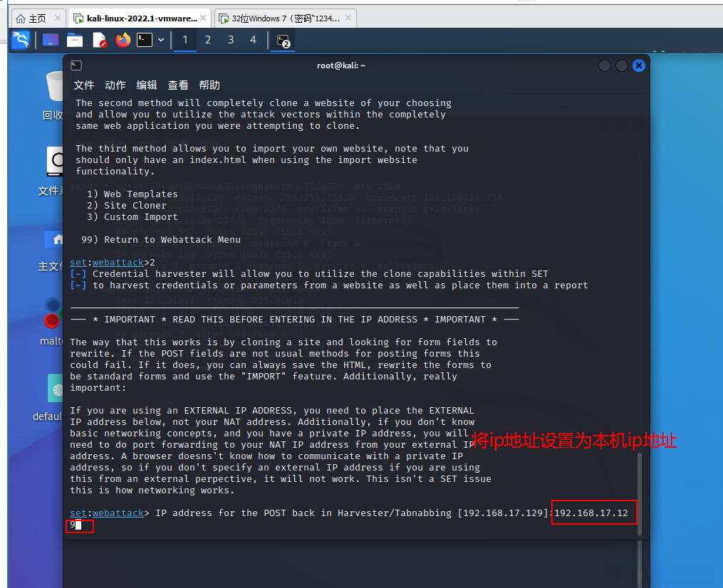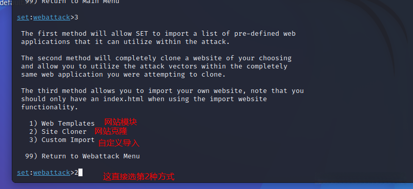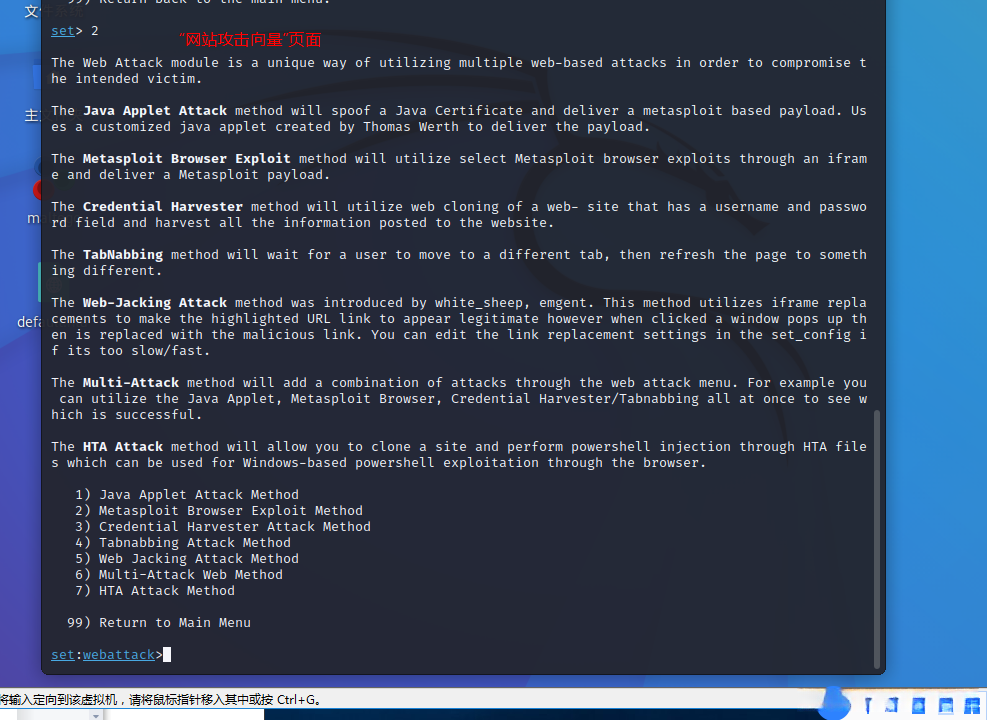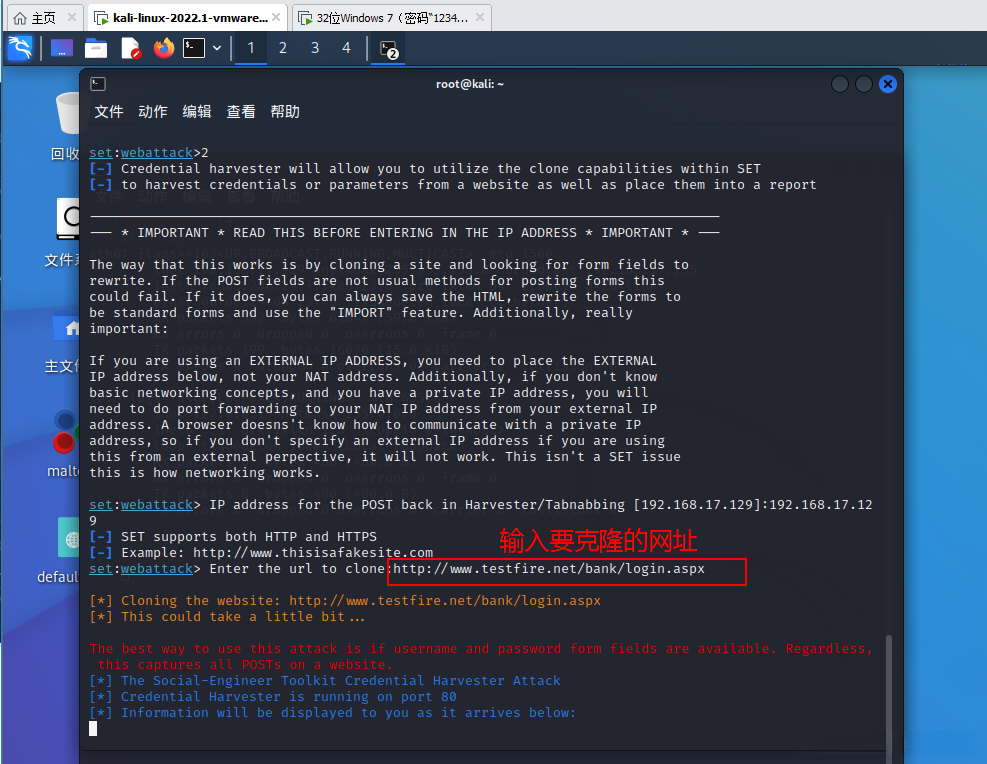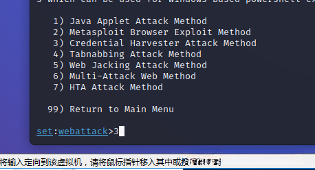 菜单:Social-Engineering Attacks / Website Attack Vectors/Credential Harvester 攻击方法