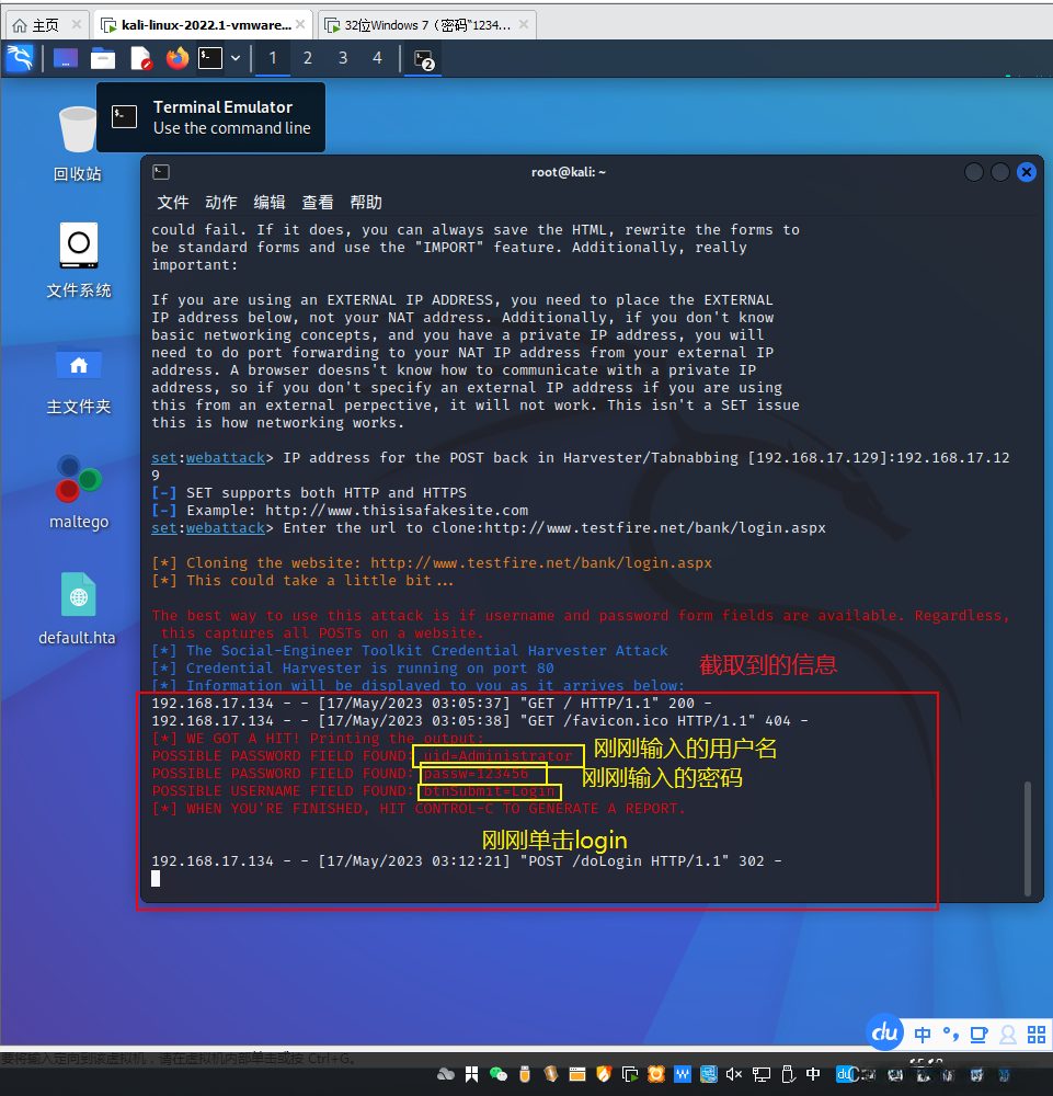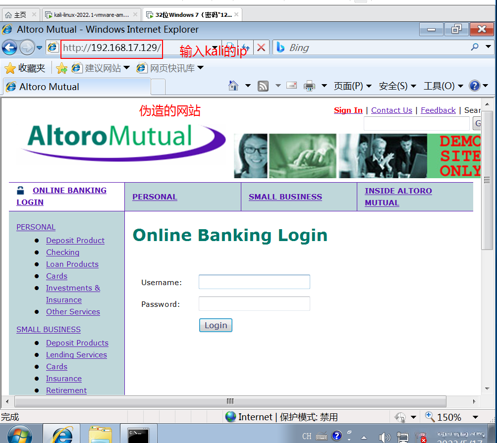 5、在靶机(32位Windows7)中访问这个伪造的网站