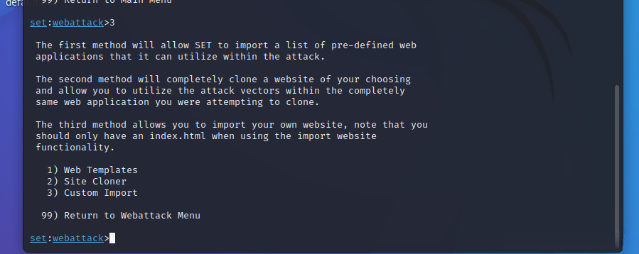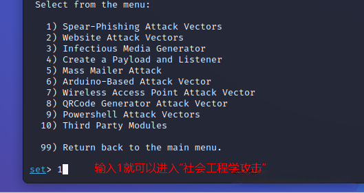 选择:Social Engineering Attacks(社会工程学攻击)-- Web-Based Attack Vectors(基于Web的攻击途径)--Identity Theft Vector Method(身份窃取器方法)