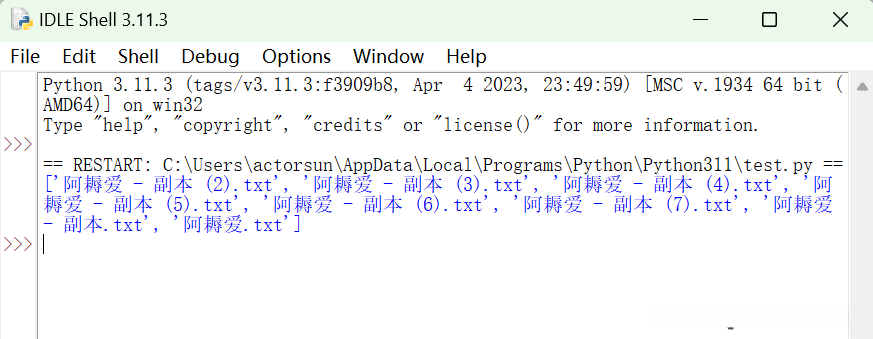 #其中把文件夹路径放在c:\ 这个位置,把搜索的名称替换为.txt就可以#这是一个列表推导式