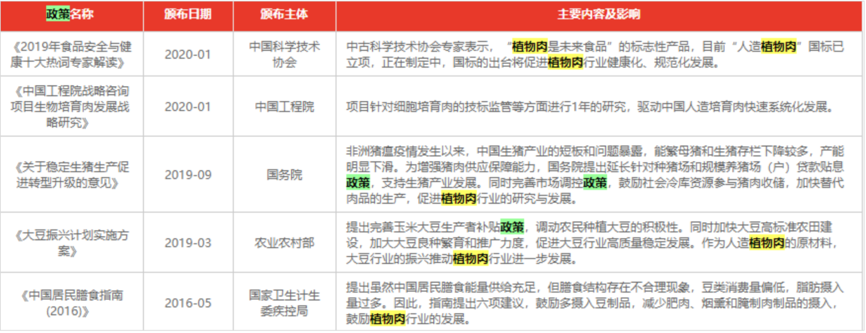 **4.**政策推动植物蛋白肉、实验室培育肉