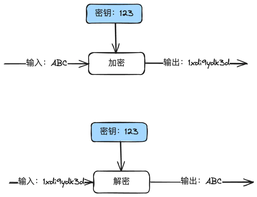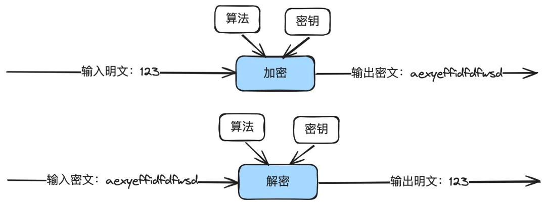 编码 是将原始信息(明文)通过特定的算法和密码钥匙转化为不可读字符(密文)的过程。例如将明文字串"123"经过特定加密方式转化为"aexyeffidfdfwsd"。