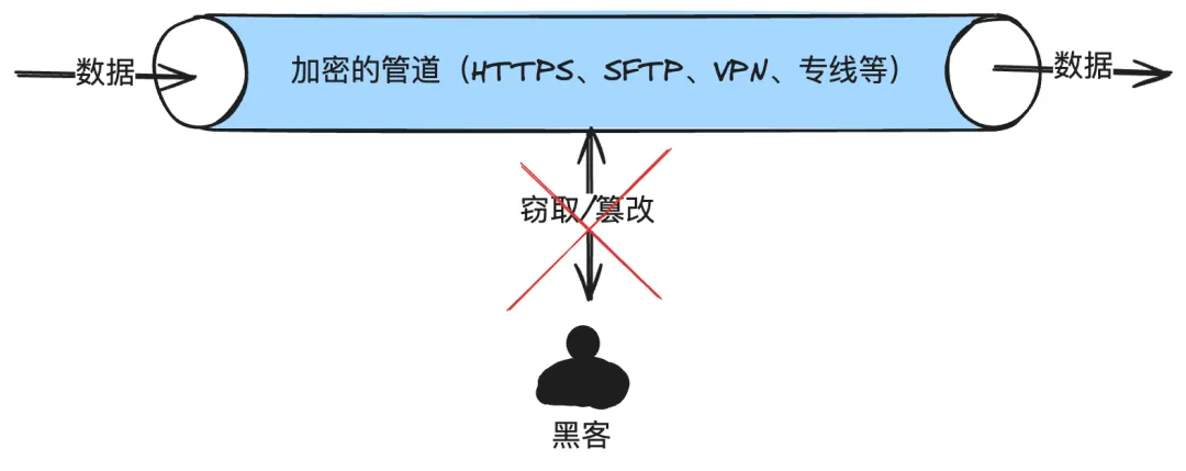 大量敏感信息在完成加密后传输确实会增加额外步骤和资源消耗。能不能简化操作流程呢?我们建议在通信过程中先对传输通道进行加密处理,并将机密内容发送给授权方处理。这些技术方案都属于这一类别。