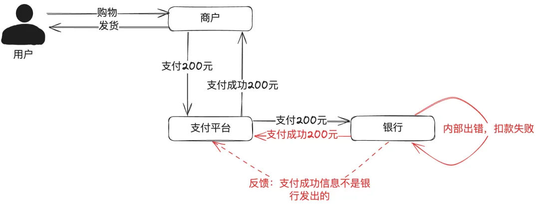 在这种情况下相对罕见。举例来说,在一个具体的场景中,支付平台向银行发起200元扣款请求后,并未成功完成扣款操作。然而在交易反馈中显示已成功,并通知了商户发货情况。但银行随后表示,他们返回给支付平台的反馈信息中并未明确记录此次扣款成功。这种做法属于抵赖行为。