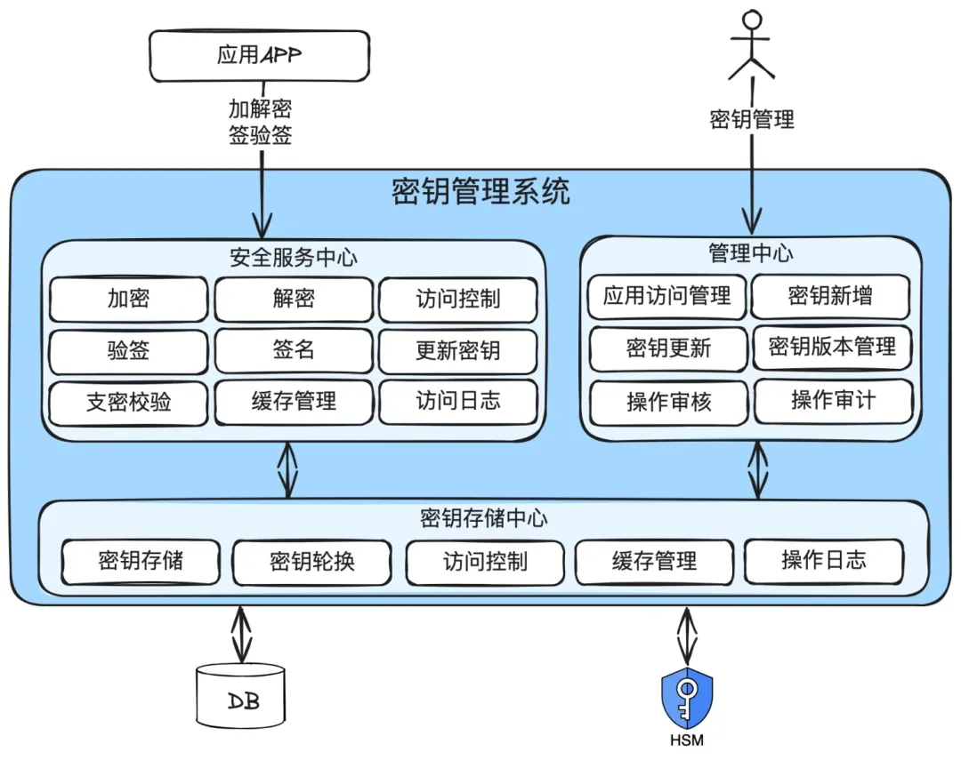 - 各应用将通过调用该系统来完成加密解密和签名验签操作,并采取措施防止任何业务应用直接读取这些敏感数据以降低泄题风险。