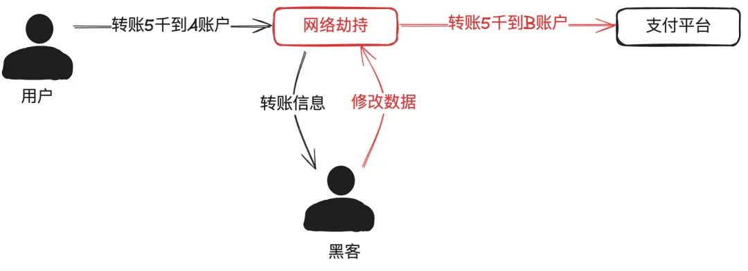 此外,在转账操作中修改收款账户或金额是一个常见的安全漏洞利用方式。当交易请求遭到中间人攻击时系统会自动将原收款账户更新为临时测试账户随后发送给结算机构这一步骤若执行不当就可能导致资金转移至错误的结算账户进而引发损失