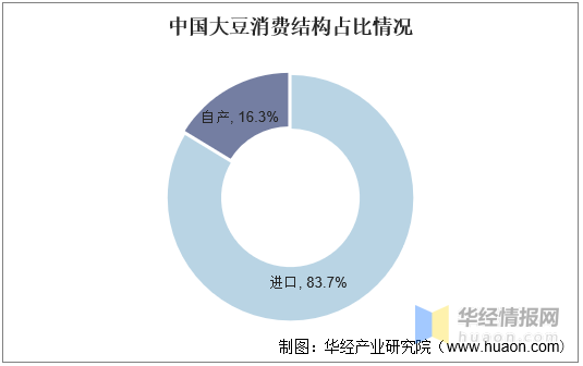 从大豆消费结构情况来看,目前我国大豆进口依赖严重,2020年我国大豆消费量中,进口大豆占比为83.7%,国产大豆占比仅为16.3%。