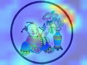 因此,在本研究中,默认将最佳微调层配置为第4个块和第3个卷积层。为了观察微调效果,在FICM模型中选择并分析了第5个块及其内部各卷积层输出特征的表现形式(如 图 3 所示)。其中第一组原始样本选取了具有代表性的绵竹年画作品(第一张原始图片示例),第二组则采用了杨柳青年画样本(第二张原始图片示例),第三组选取的是杨家埠 yearbook samples(第三张原始图片示例)。通过多级特征提取过程可以看出,在模型逐步学习过程中其关注区域呈现出明显的演变趋势:从初始阶段仅关注图像外围区域,在多次迭代后则能够更加突出识别图像中最具辨识度的部分。这表明该方法在提升模型视觉语义表征能力方面展现出显著的效果。