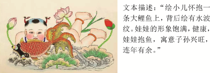已有相关研究就非遗图片的分类问题进行了深入探讨[3,4]。然而,在现有研究中发现所采用分类模型多集中于利用图像的底层特征或高层特征作为输入信息(如图1所示),这一方法虽然在一定程度上取得了不错的效果[3,4]但存在明显局限性:即未能充分挖掘文字描述所带来的潜在信息价值。值得注意的是,在我国丰富的非物质文化遗产中许多作品都配备了精美的文字描述内容这些文字信息往往能够为图像识别提供重要的线索:以下结合杨柳青年画这一典型案例(如图1所示)进行分析:该作品的主要艺术特色在于描绘一位娃娃常伴随手持莲花或怀抱鲤鱼等方式展现这种形象既体现了传统文人雅趣又寄托着人们对美好生活的向往:而其对应的文字段落则恰好能够辅助模型更好地理解作品的主题内容进而提升模型识别的能力。