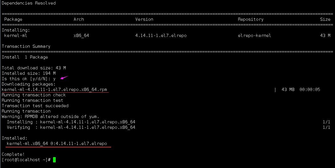 yum --enablerepo=elrepo-kernel install kernel-ml