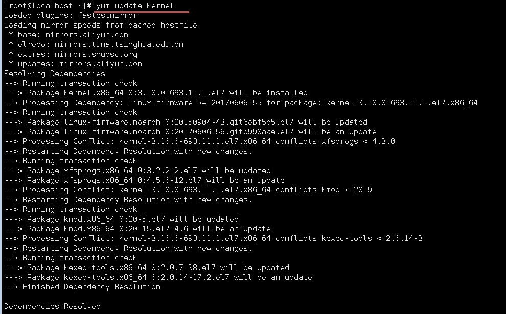 08-如果执行yum update kernel命令,会更新内核到CentOS7.4的内核3.10.0-693.jpg