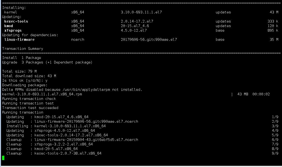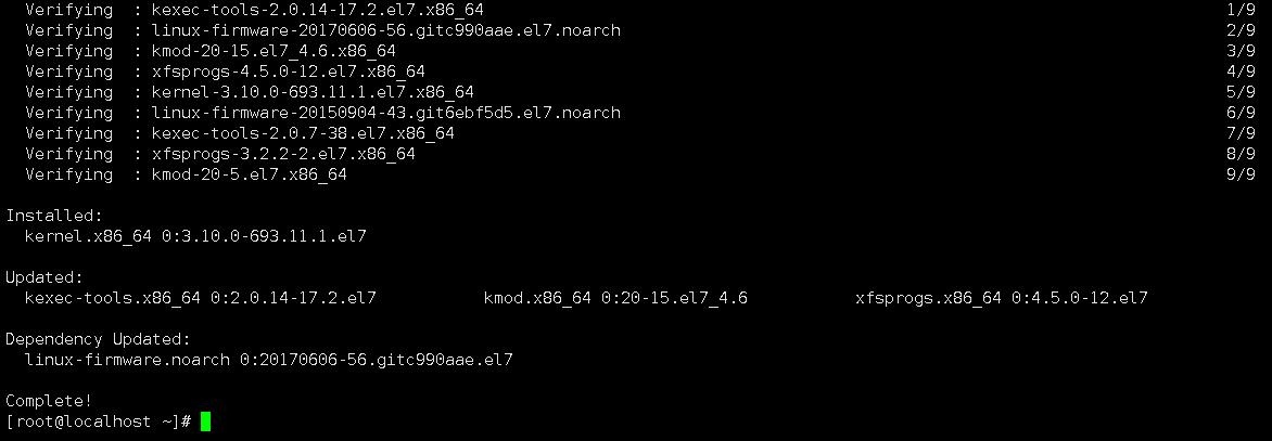 2、升级到4.4.x以后,如果随意使用yum update -y命令进行软件升级,会继续安装CentOS7.4中的3.10.0-693内核软件包,并且会作为第一个启动项。
