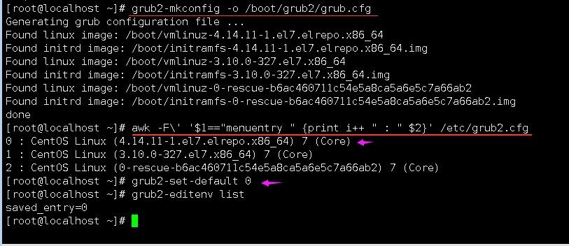 CentOS7设置GRUB系统内核开机选单