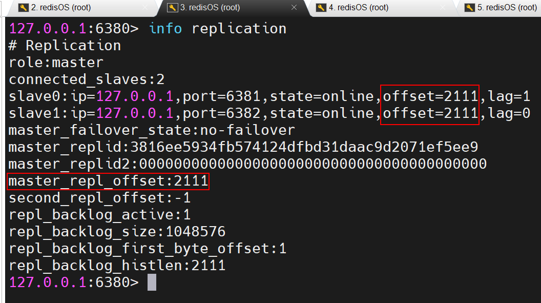 每当 master 发送一个字节数据时, 该 master 会进行累计计算. 统计信息可通过 info replication 中的 master_repl_offset 属性获取. 此外, 当 master 接收到 slave 的复制偏移更新时, master 会相应地保存该复制偏移量 offset.
