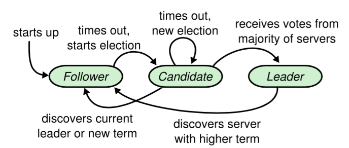 - Candidate:候选者将在选票统计阶段竞争领导职位,并可能成功当选成为新一任的Leader。在选举过程中扮演着关键的角色。