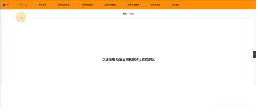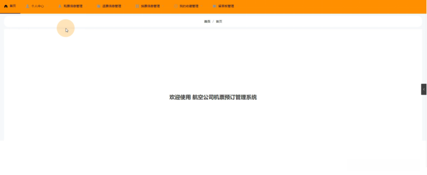当用户登录该机票预订系统时,在其界面中可以看到多个功能模块可供调用:包括首页版块(显示近期航班信息)、个人中心区域(展示乘客个人信息)、购票记录管理选项(供乘客查询已购买订单状态)、退票申请记录查询部分(供乘客核对并处理已购买机票退票事宜)、换票申请处理模块(支持乘客在有效期内申请更换机票)以及收藏服务功能(方便乘客整理常用航班信息)。