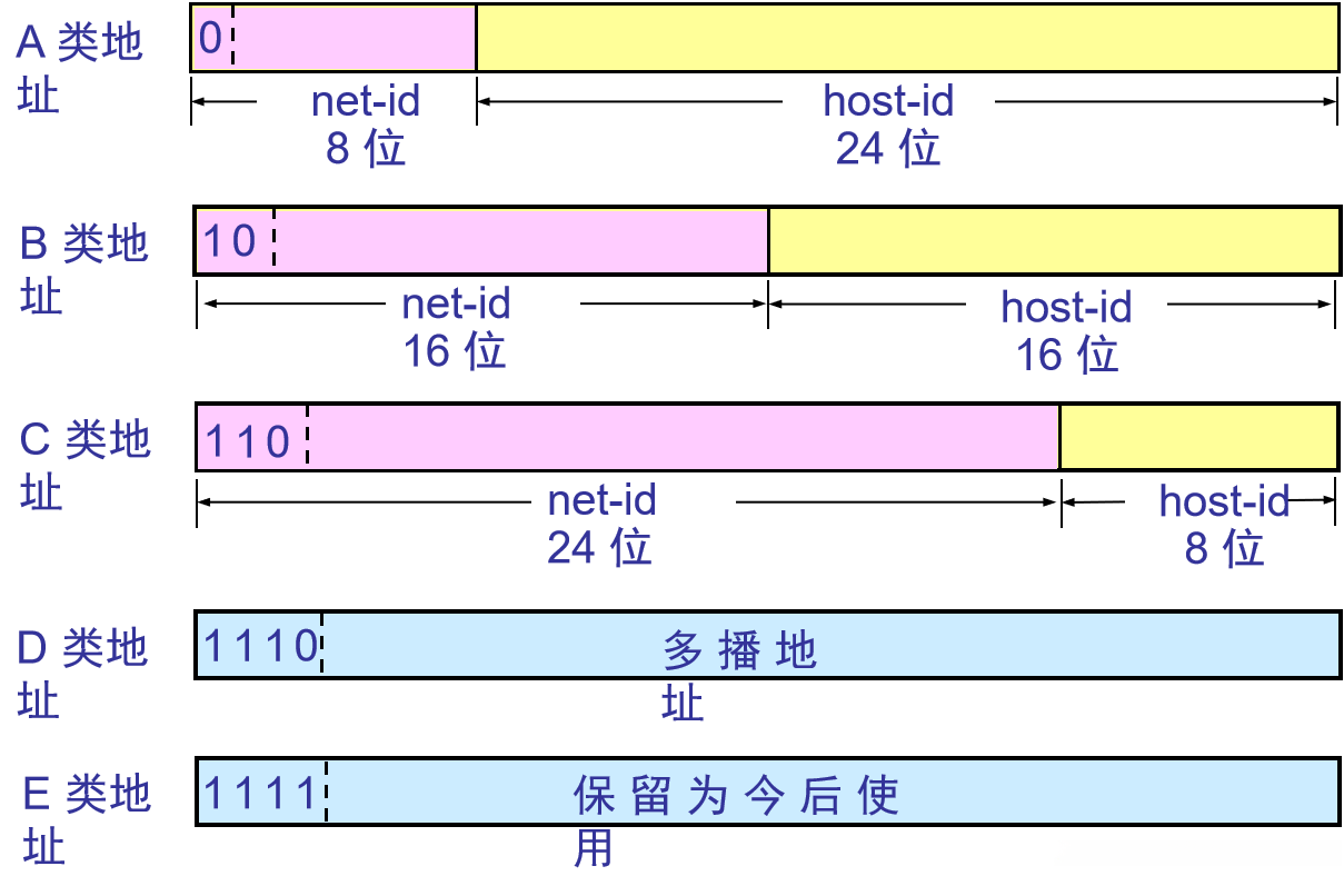 通过上图可以看出,每一类IP地址都是由两部分组成: