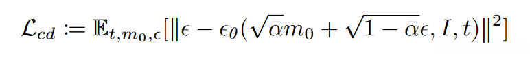 \mathcal{L}(\theta)=\mathbb{E}_{t,\mathbf{x}_t,\epsilon}\left[\|\epsilon-\epsilon_\theta(\mathbf{x}_{t-1},\mathbf{x}_t,t;\theta)\|^2\right]