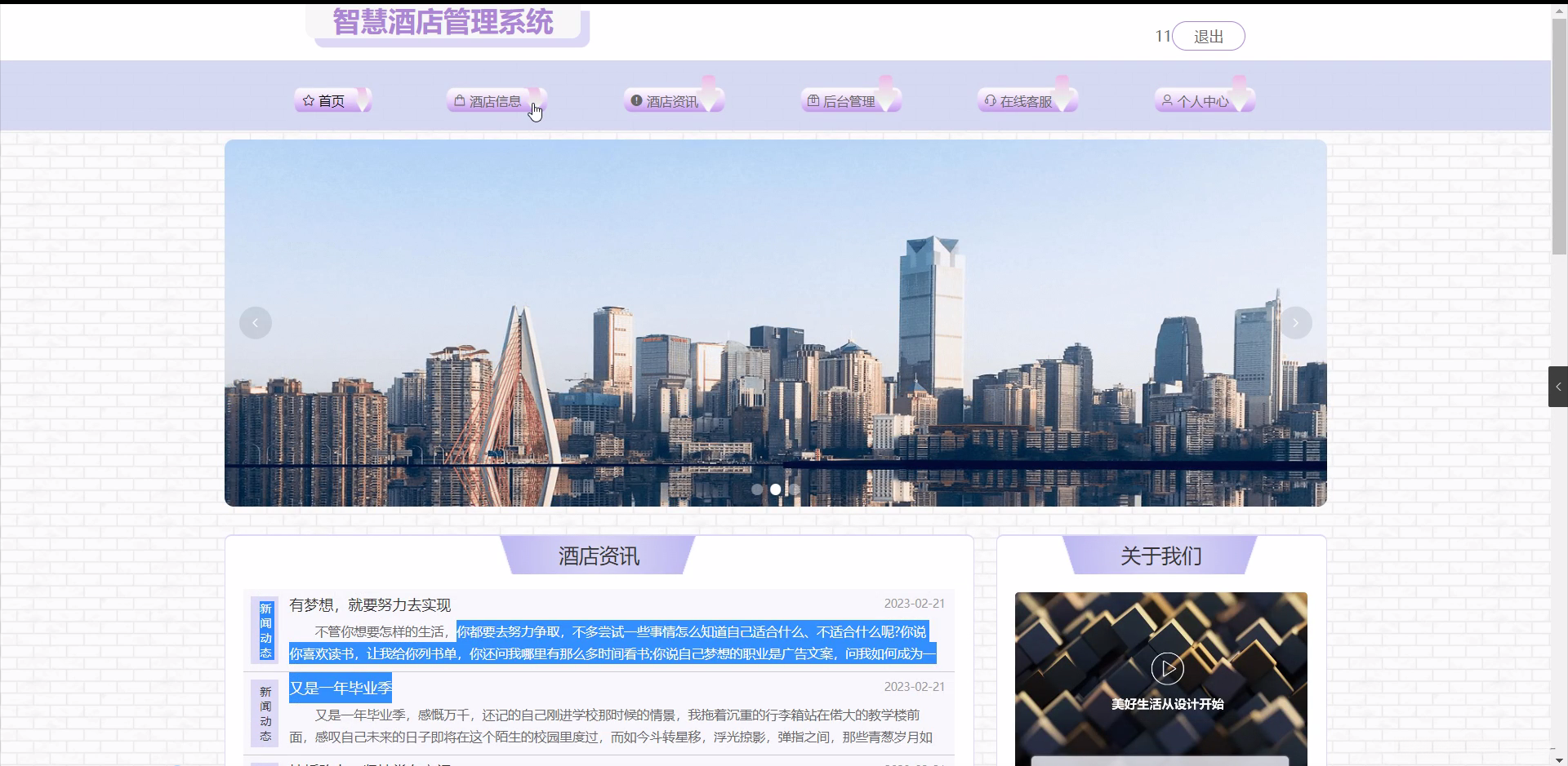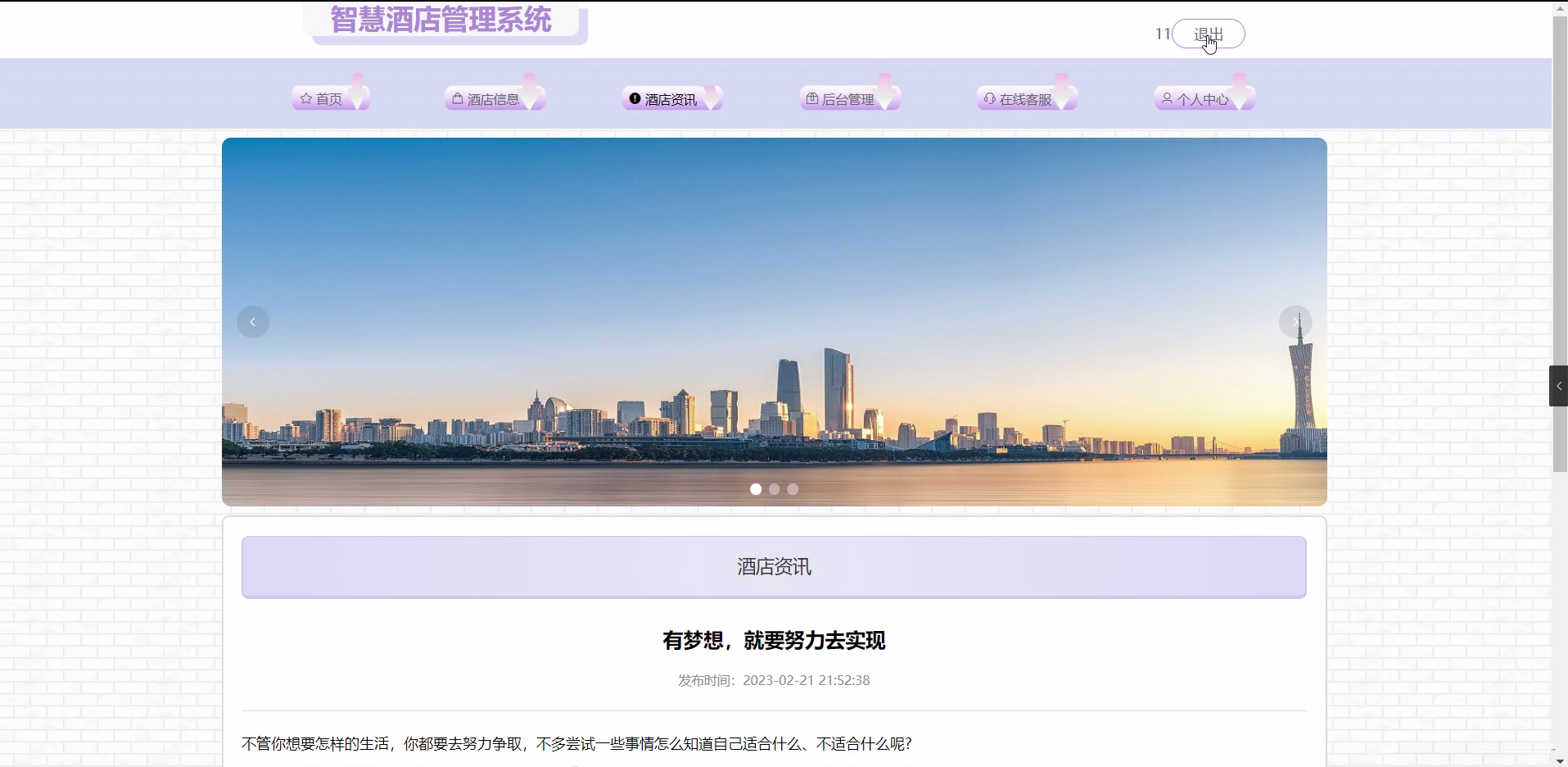 研究目的: 本研究的目的在于设计并实现一个功能全面、操作便捷的智慧酒店管理系统。该系统旨在通过技术手段解决传统酒店管理中的问题,提供一个集成化的酒店信息管理、客房预定、入住登记、退房登记平台,同时也为酒店经营者、工作人员、消费者等相关参与者提供有效的工具。