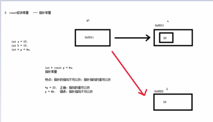 特点:指针的指向可以修改,但不可以修改指针指向的 地址的值