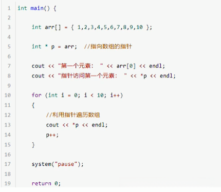 作用:利用指针访问数组元素;